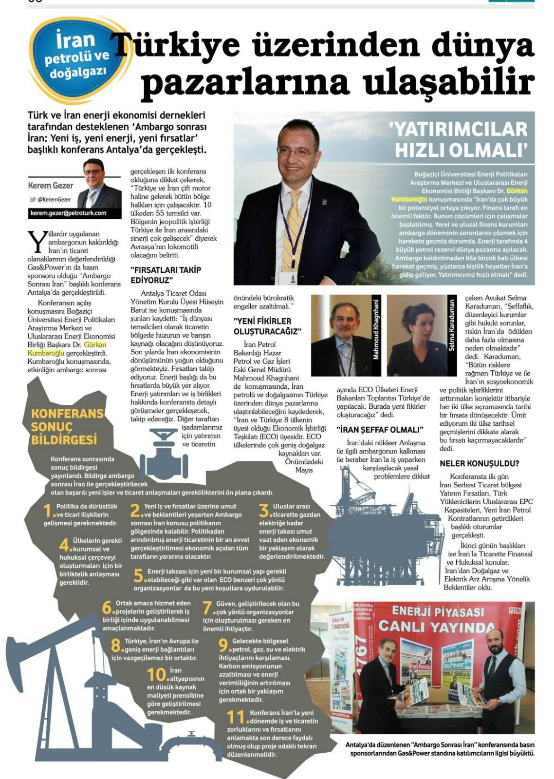 “Ambargo Sonrası İran: Yeni İş, Yeni Enerji, Yeni Fırsatlar” başlığı altında düzenlenecek konferansa, İran, Türkiye ve çeşitli ülkelerden çok sayıda üst düzey yönetici, akademisyen ve uzman katılmaktadır.