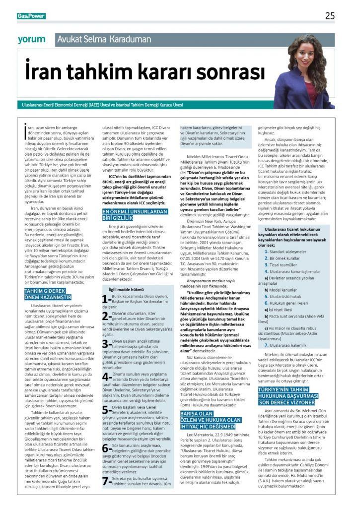 Av. Selma Karaduman konu ile ilgili “İran Anayasası’na göre özel ve yabancı şirketlerin doğal kaynaklarını sahiplenme imkanı bulunmamaktadır. Bu sebeple yeni dönemde, İran ile ticaret yapan yatırımcılar